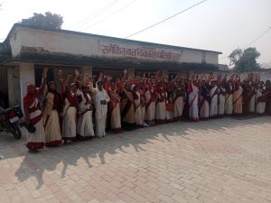 • धरना प्रदर्शन:आंगनबाड़ी सेविका – सहायिकाओं ने दिया धरना