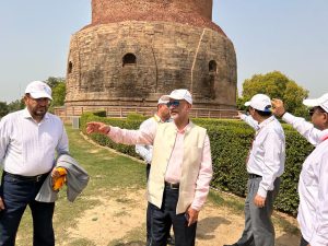 • विदेशी प्रतिनिधियों ने गुप्तकाल में बने 43.6 मीटर ऊंचे और 28 मीटर चौड़े धमेक स्तूप की परिक्रमा की