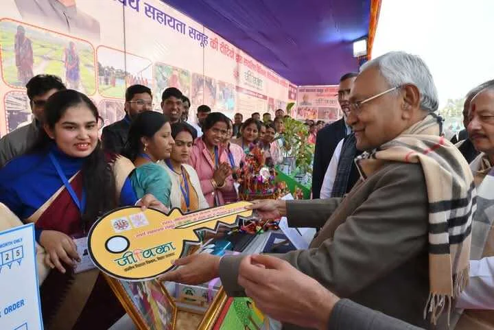 स्वयं सहायता समूहों को आर्थिक सहायता : मुख्यमंत्री ने महिलाओं को आत्मनिर्भर बनाने के उद्देश्य से 5251 स्वयं सहायता समूहों को 33.98 करोड़ रुपये, 7685 स्वयं सहायता समूहों को 82.55 करोड़ रुपये और 1232 जीविका दीदियों के परिवारों को 6.55 करोड़ रुपये का सांकेतिक चेक प्रदान किया। उन्होंने जीविका दीदियों के स्टॉलों पर प्रदर्शित विभिन्न उत्पादों को देखा और उनसे संवाद किया। मुख्यमंत्री ने कहा कि 2005 में जब हमें बिहार में काम करने का अवसर मिला, तब स्वयं सहायता समूहों की संख्या बहुत कम थी। हमने विश्व बैंक से कर्ज लेकर इन समूहों की संख्या बढ़ाई और इन्हें जीविका नाम दिया। इससे राज्य की महिलाओं की आर्थिक स्थिति में सुधार आया है और वे आत्मनिर्भर बनी हैं। मुख्यमंत्री ने जीविका दीदियों को बेहतर कार्य के लिए बधाई दी।