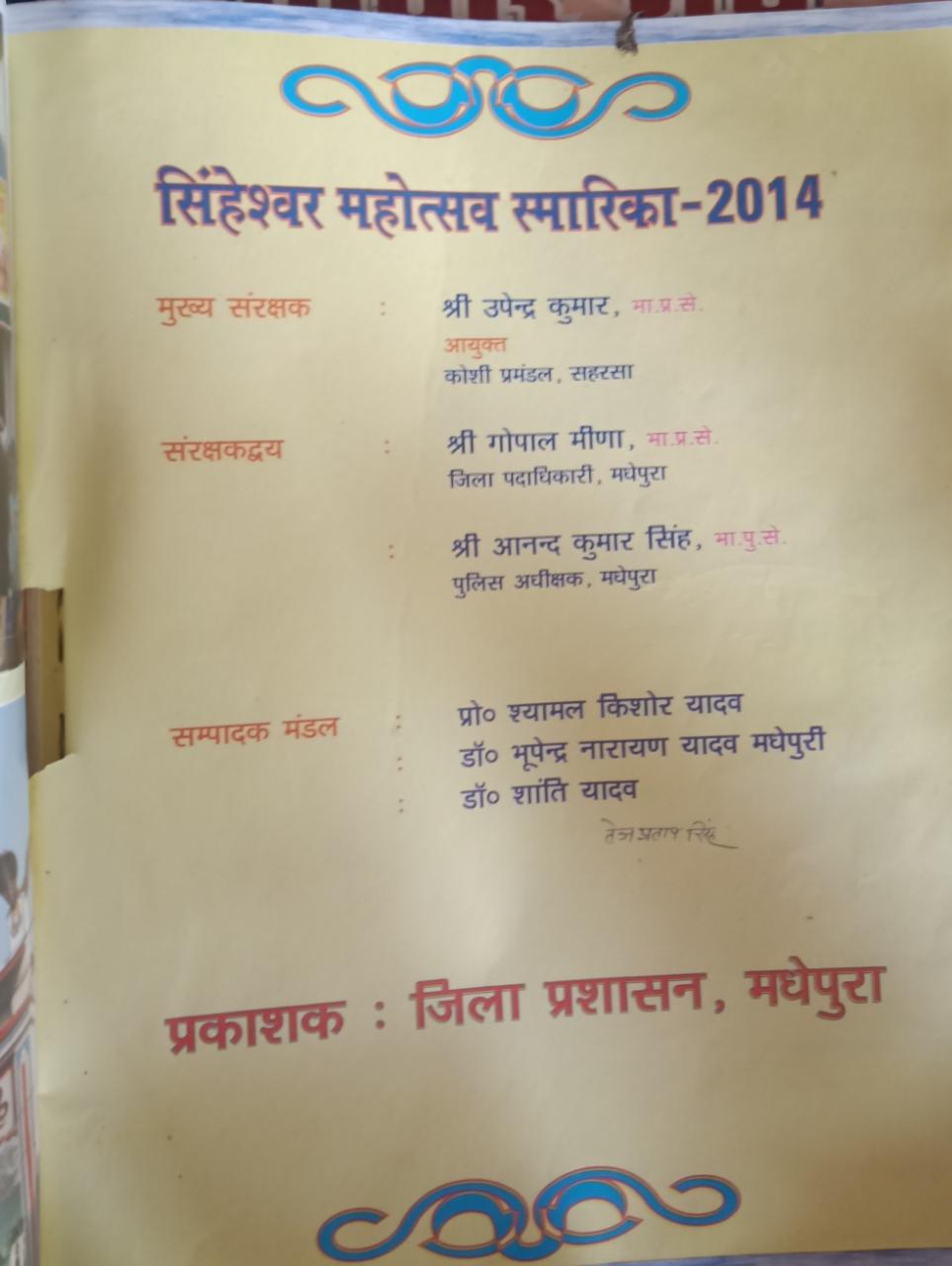 मधेपुरा/उत्तर बिहार के देवघर कहे जाने वाले सिंहेश्वर मंदिर की लचर व्यवस्था,मेला में लापरवाही व सिंहेश्वर महोत्सव में स्थानीय लोगों की मांग की उपेक्षा पर वाम छात्र संगठन एआईवाईएफ जिला अध्यक्ष हर्ष वर्धन सिंह राठौर ने मुख्यमंत्री ,पर्यटन मंत्री सह उप मुख्यमंत्री व पर्यटन विभाग के निदेशक को पत्र लिख जिला प्रशासन मंदिर प्रबंधन की शिकायत की है।
