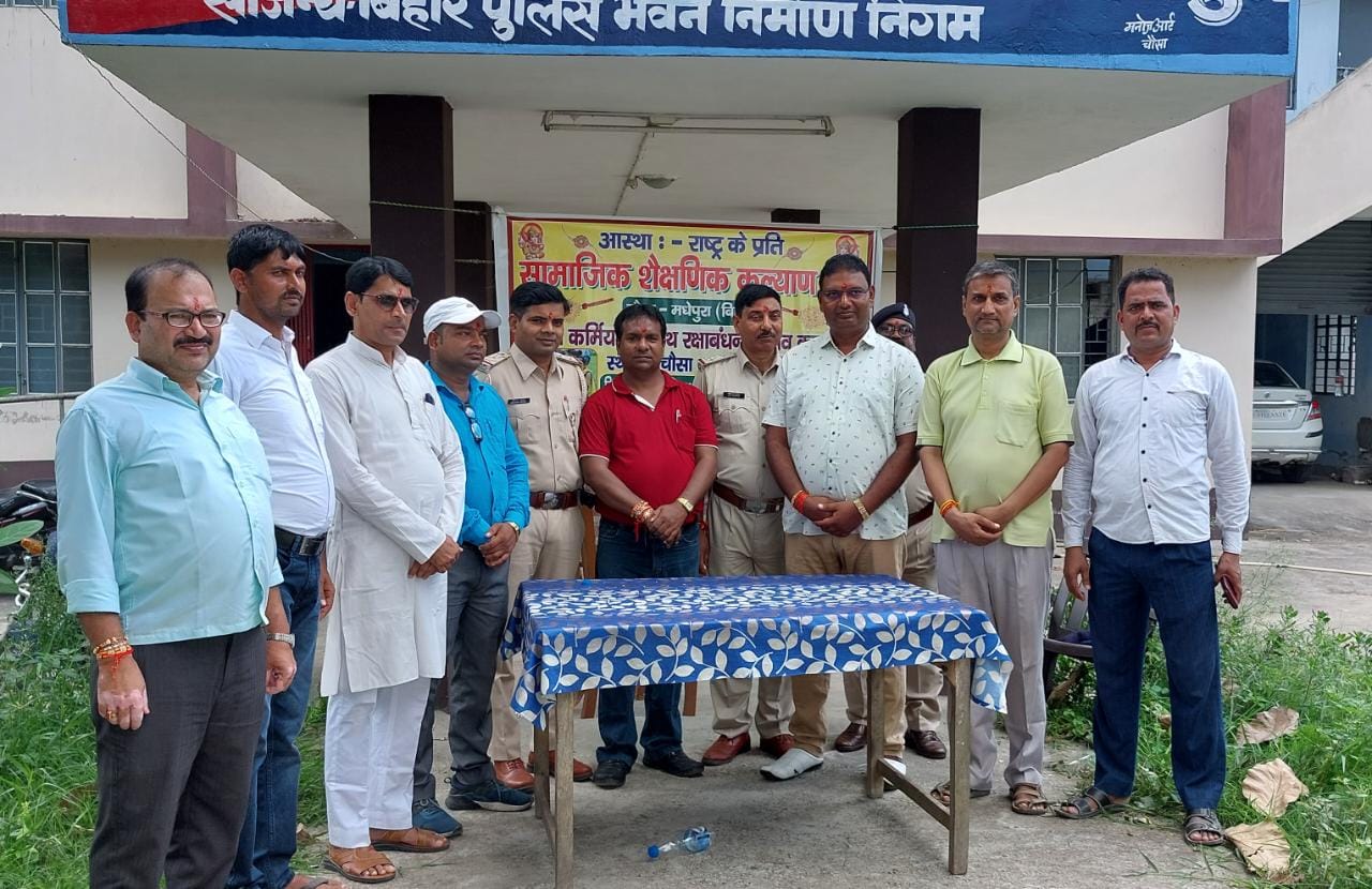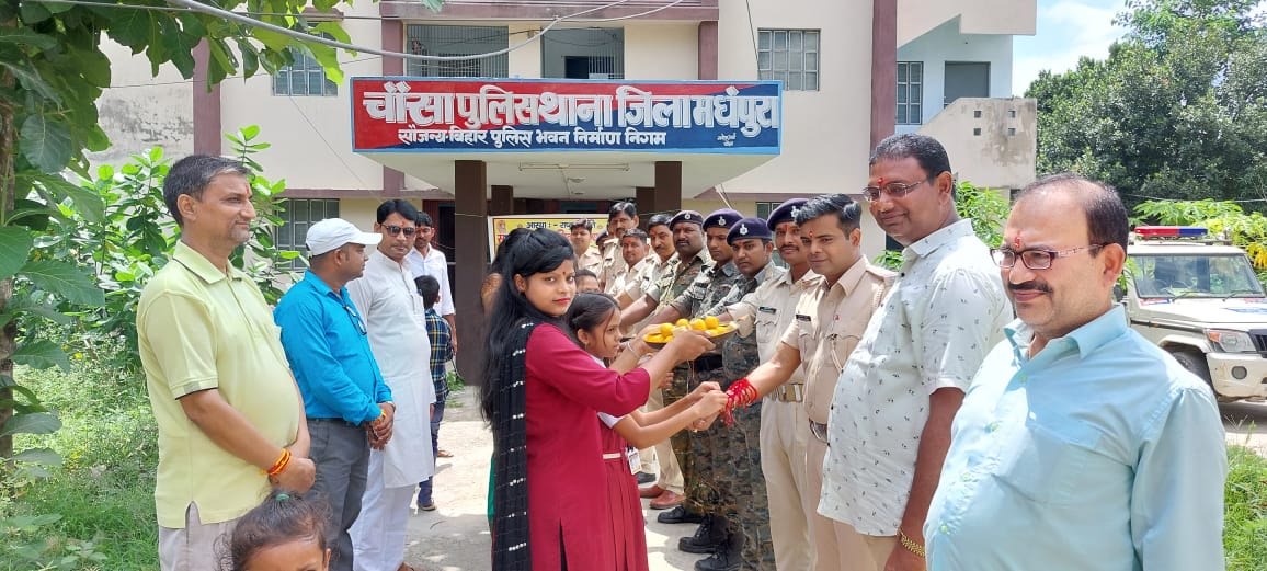 चौसा, मधेपुरा/सामाजिक शैक्षणिक कल्याण संघ के सौजन्य से चौसा थाना परिसर में आज शुक्रवार को रक्षाबंधन उत्सव कार्यक्रम का आयोजन किया गया। कार्यक्रम के दौरान बहनों ने चौसा थाना के पुलिस पदाधिकारियों के साथ तमाम पुलिस कर्मियों को रक्षा सूत्र बांधे एवं उनकी लंबी उम्र की कामना करते हुए अपनी व देश की रक्षा करने का संकल्प दिलाया। पुलिस भाइयों ने भी राखी के प्रति अपनी जिम्मेदारियों को निभाने का वचन दिया।
