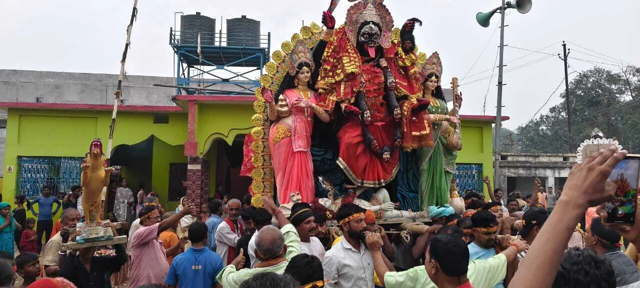 चौसा,मधेपुरा: प्रखंड मुख्यालय के काली मंदिर में गुरुवार को माँ काली प्रतिमा विसर्जन के साथ कई जगहों पर शांति पूर्ण रूप में संपन्न हो गया। चौसा मुख्यालय स्थित काली मंदिर से विसर्जन के लिए निकाली गई माता काली, लक्ष्मी, सरस्वती, कार्तिक, गणेश सहित विभिन्न देवी-देवताओ की प्रतीमा को मंदिर के चारो तरफ पांच वार परिक्रमा कराने के बाद माता का नगर भ्रमण भी कराया गया। बैंड बाजा के साथ नगर भ्रमण के लिए निकाली गई।इसके बाद गाजे बाजे के साथ नगर चौसा बस्ती,लालजी नगर,बसस्टेंड ,आदर्शनगर, गांधी चौक,थाना चौक,समेत विभिन्न जगहो पर भ्रमण कर नजदीक के तालाब एवं आसपास के तालाबो में वैदिक मंत्र उच्चारण के साथ जलप्रवाहित किया गया ।