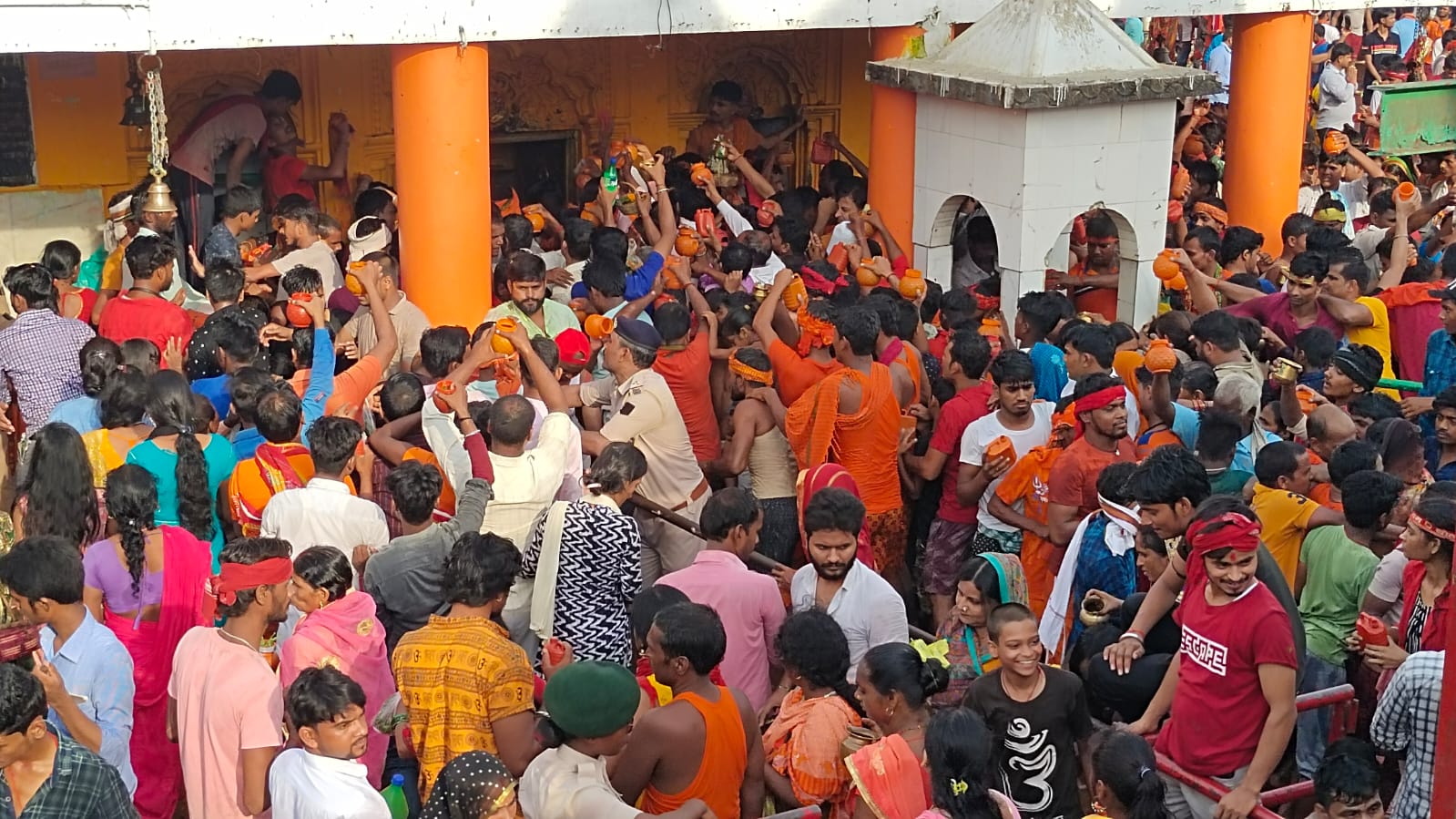 श्रद्धालुओं को हुयी काफी परेशानी- देवाधिदेव महादेव की पुजा अर्चना के लिये लोगों का हुजुम ऐसा उमड़ा कि श्रद्धालुओं को संभालना मुश्किल हो गया. मंदिर परिसर सहित शिवगंगा पर श्रद्धालुओं की कतार दोपहर बाद तक लगी रही. बताया गया कि गर्भ गृह का पट खुलने के बाद से ही श्रद्धालुओं की लंबी कतार लग गयी थी. श्रद्धालु घंटो लाइन में रहकर पुजा करने को मजबुर थे. लगभग बारह बजे जब श्रद्धालुओं का रैला बाबा का जलाभिषेक के लिये गर्भ गृह में पहुंचने को बैताब था. उस वक्त प्रशासन ने सीधे अपने हाथ खड़े कर दिये. जिस वजह से श्रद्धालुओं को काफी परेशानी का सामना करना पड़ा. पुलिस बल काफी कम होने के रहने के कारण भीड़ पुरी तरह से बेकाबु हो गयी थी. बार- बार श्रद्धालुओं का हुजुम एक जगह सिमट जाता रहा. लगभग आधे दिन तक भीड़ को नही संभाला जा सका. हालांकि भीड़ को अनियंत्रित देख थानाध्याक्ष अरुण कुमार ने थाने से लगभग सभी पुलिस बल को मंदिर में बुला लिया. फिर भी भीड़ ने एक न सुनी.