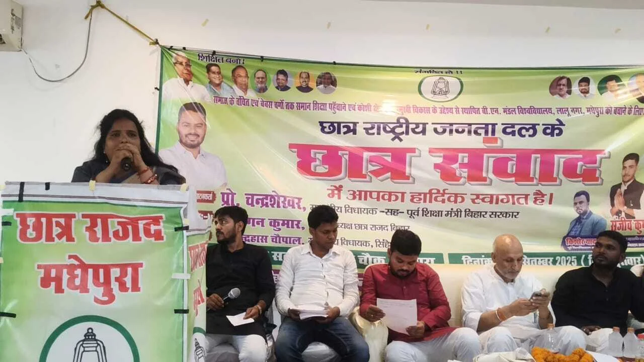 राजद महिला नेत्री कुमारी विनीता भारती ने बीएनएमयू विश्वविद्यालय की बदहाल स्थिति पर चिंता जताई। उन्होंने कहा कि उच्च शिक्षा के बुनियादी ढांचे को मजबूत करने के लिए छात्र-युवा एकजुट होकर बदलाव की राह पर आगे बढ़ें। उन्होंने दावा किया कि आने वाले समय में युवाओं के सहयोग से बिहार में तेजस्वी यादव की सरकार बनेगी, जो शिक्षा से लेकर सभी विभागों को सुदृढ़ करेगी।