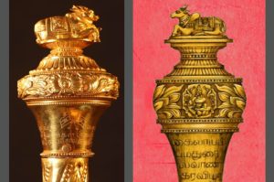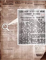 इस राजदंड पर नंदीजी की आकृति भी उभारी गई थी।आजादी से कुछ ही समय पहले यह राजदंड दिल्ली पहुंचा था।इस पर गंगाजल छिड़ककर पवित्र किया गया और नेहरू जी को सौंपा गया था।यह घटना 14 अगस्त 1947 की रात्रि 11 बजकर 45 मिनिट की हैं।