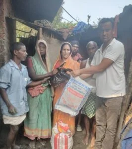 मंगलवार को युवा समाजसेवी मोo शहाबुद्दीन अपने सहयोगियों के साथ घटना स्थल पर पहुंच कर अग्निपीड़ितों के बीच राहत सामग्री का वितरण किया।