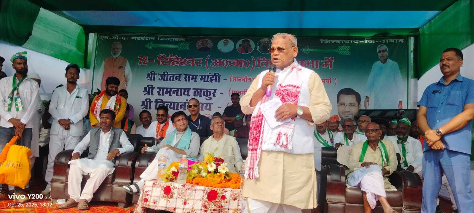 मधेपुरा जिले के कुमारखंड प्रखंड के श्रीनगर थाना क्षेत्र के रामनगर महेश पंचायत में सिंहेश्वर विधानसभा क्षेत्र से एनडीए गठबंधन के जदयू प्रत्याशी प्रो रमेश ऋषि के समर्थन में जवाहर प्लस टू हाईस्कूल रामनगर बेला स्थित खेल मैदान में एक जनसभा आयोजित किया गया। शनिवार को दोपहर करीब साढ़े बारह बजे से शुरू हुई जनसभा को केंद्रीय मंत्री व पूर्व सीएम जीतन राम मांझी, केंद्रीय गृह राज्यमंत्री नित्यानंद राय व केंद्रीय राज्यमंत्री रामनाथ ठाकुर ने संबोधित किया। पंडित जयचंद्र झा ने कार्यक्रम की अध्यक्षता की।मंच का संचालन कामोज मिश्रा ने किया।