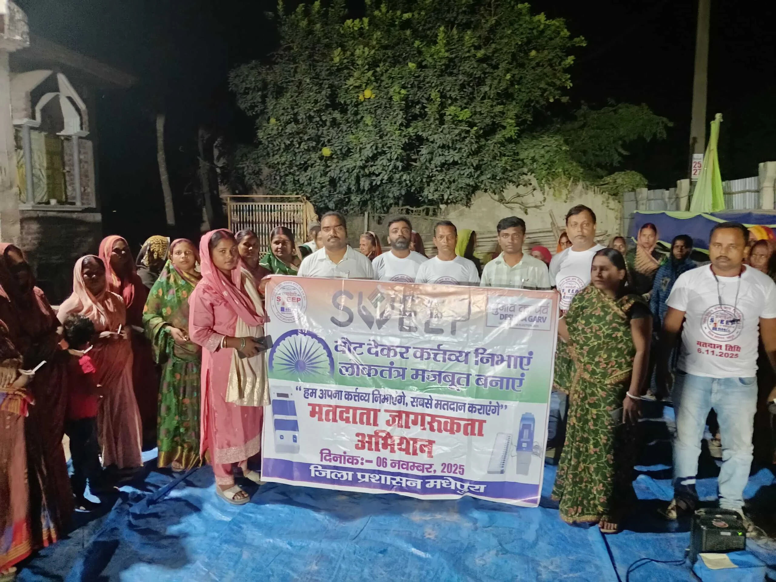 चौसा,मधेपुरा; प्रखंड के विभिन्न जीविका ग्राम संगठन ने स्वीप कार्यक्रम के अन्तर्गत संबंधित जीविका दीदियों द्वारा कैंडल जलाकर के मतदाताओं को जागरूक करने का कार्य किया। इस दौरान पहले जलपान फिर मतदान, जैसे अनेकों स्लोगन का नारा लगाते हुए मतदान को लेकर जागरूक किया गया।आगामी 6 नवंबर को होने वाले विधानसभा चुनाव 2025 में मतदान को लेकर मतदाताओं को जागरूक करने एवं मतदान शत प्रतिशत कराने के उद्देश्य से स्वीप कार्यक्रम के तहत मतदाताओं को जागरूक किया जा रहा है।