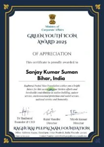 👉रघुराज पीपल मैन फाउंडेशन की ओर से से दिया गया ग्रीन यूथ आइकॉन अवार्ड 2025